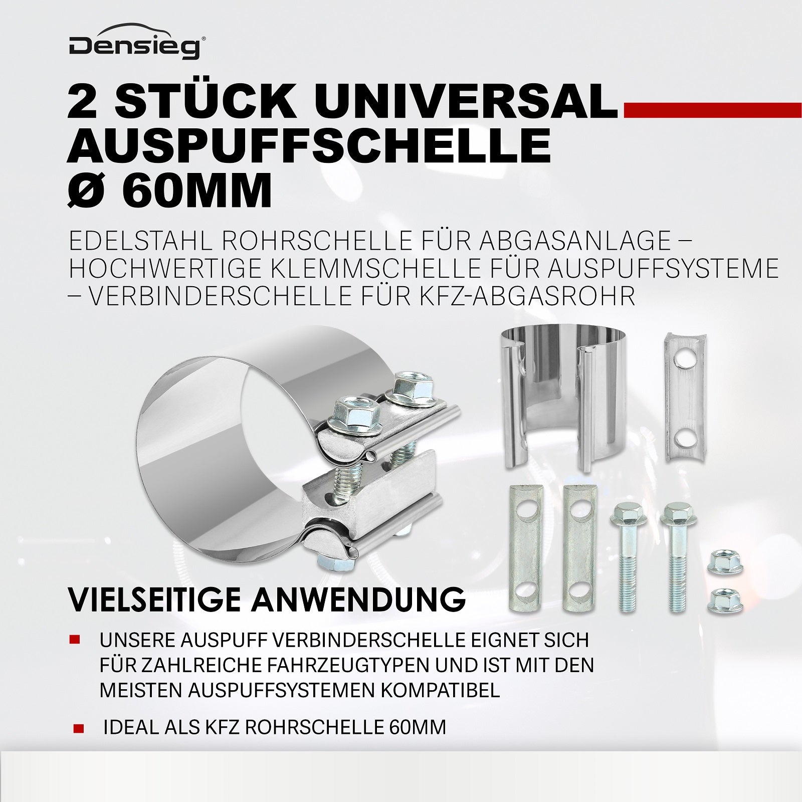 2 Stück Auspuffschelle Ø 60mm – Edelstahl Rohrschelle für Abgasanlage