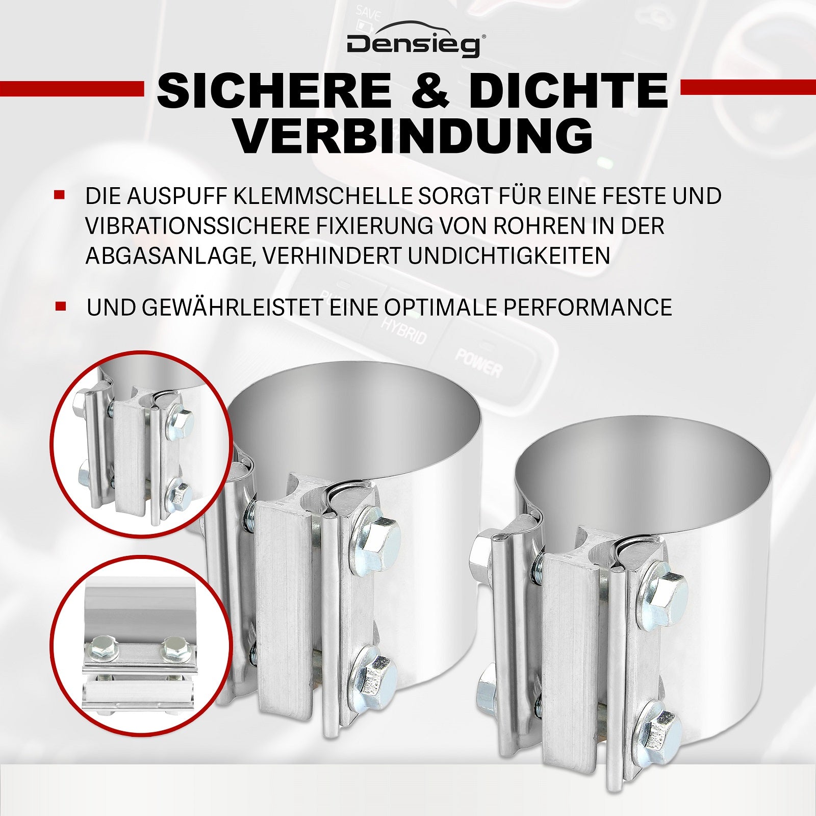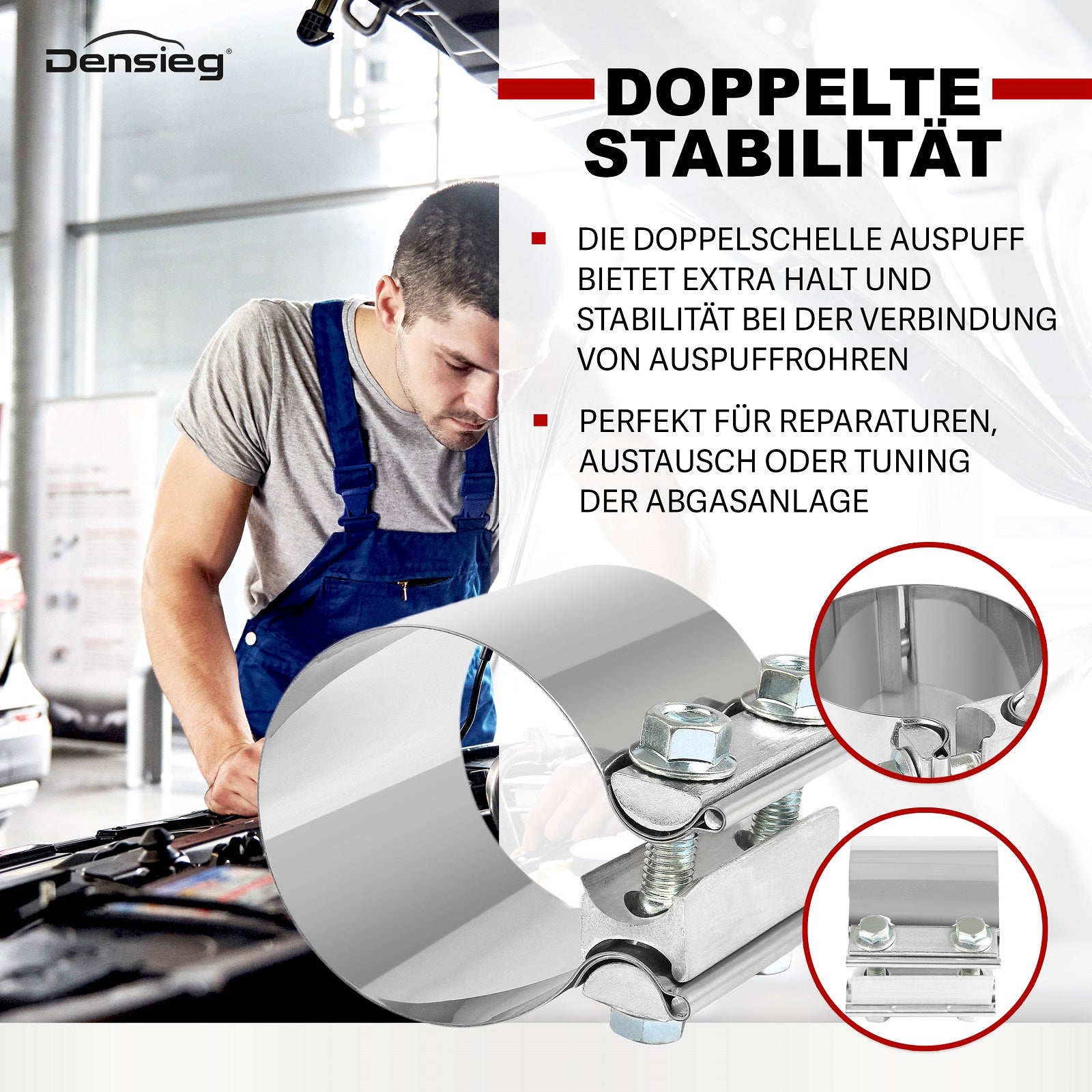 5) Doppelte Stabilität – Die Doppelschelle Auspuff bietet extra Halt und Stabilität bei der Verbindung von Auspuffrohren. Perfekt für Reparaturen, Austausch oder Tuning der Abgasanlage.
