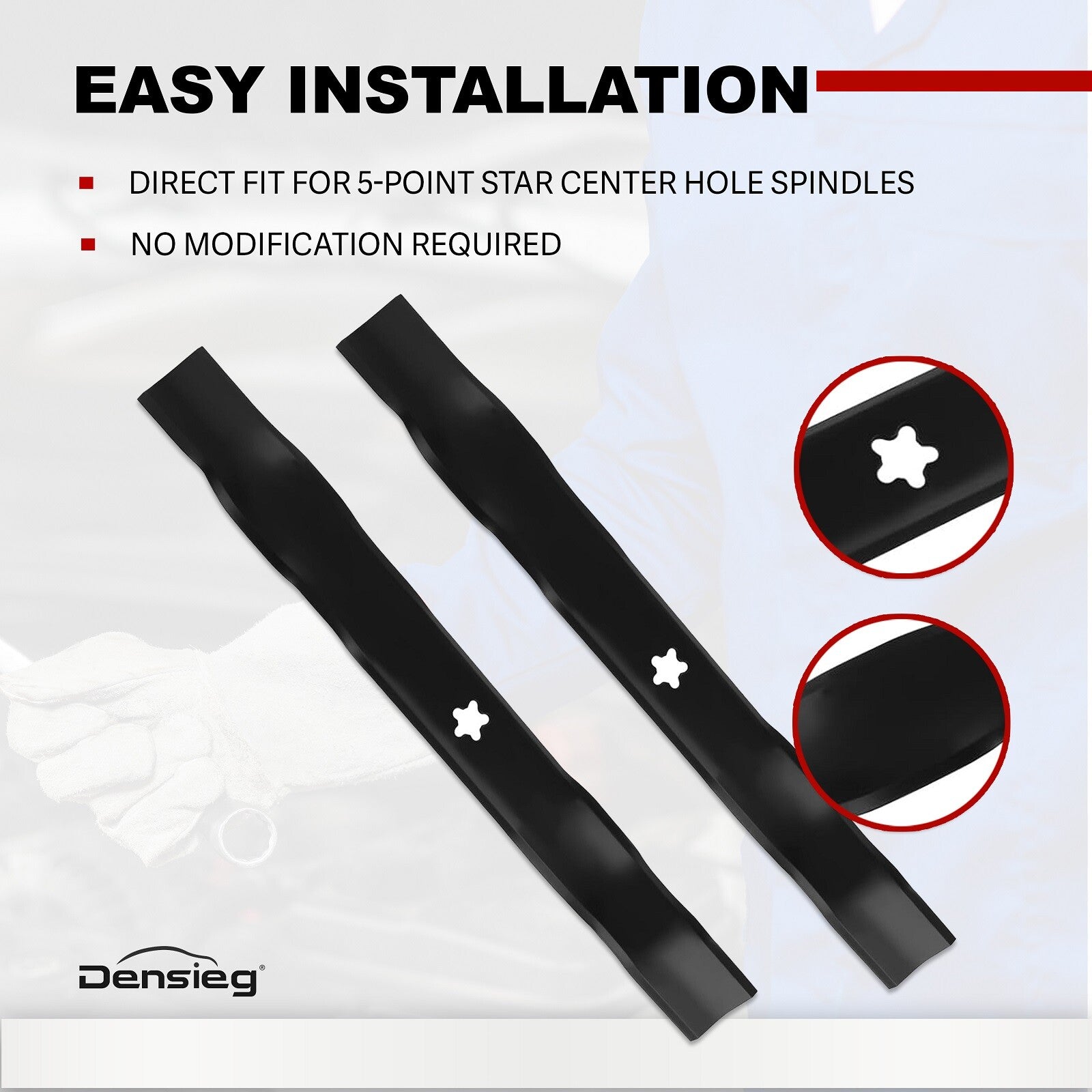 Produktinformation: Enthält 2 *Rasenmäher Messer, 53 CM lang, 6 CM breit,5-Punkt-Stern-Mittelloch-Design.