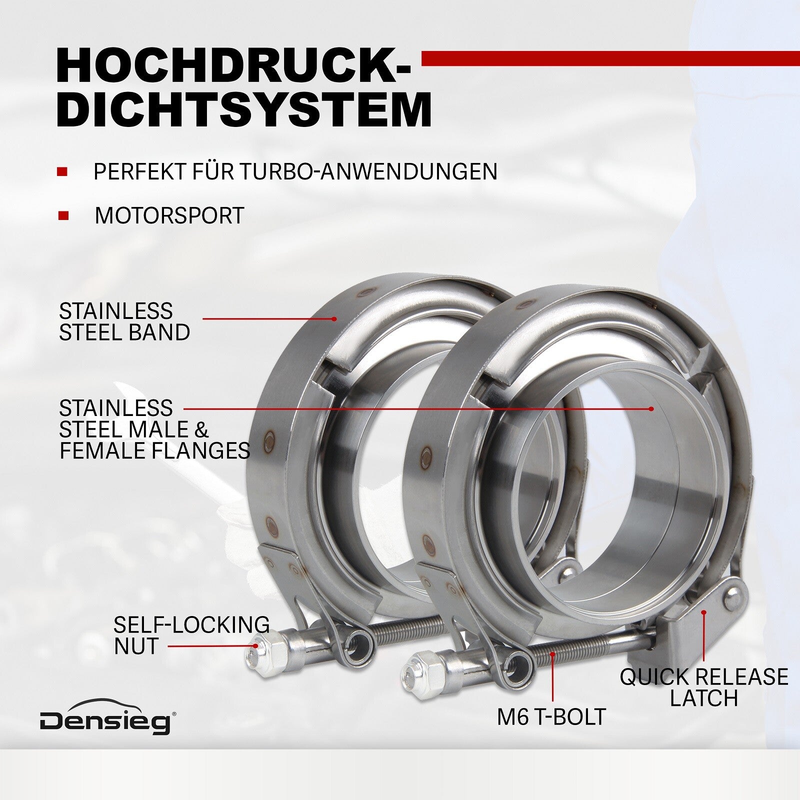 2x 2" 50,8mm V-Band Schelle + Flansch Kit Edelstahl Auspuff Turbo Klemme