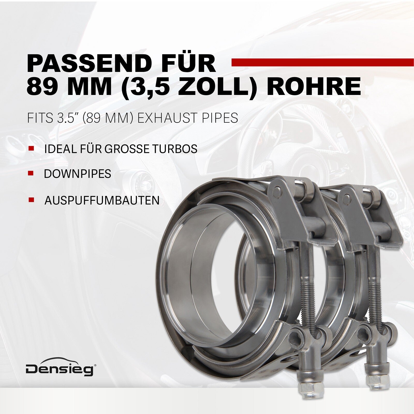 2) Passend für 89 mm (3,5 Zoll) Rohre – Ideal für große Turbos, Downpipes, Auspuffumbauten.