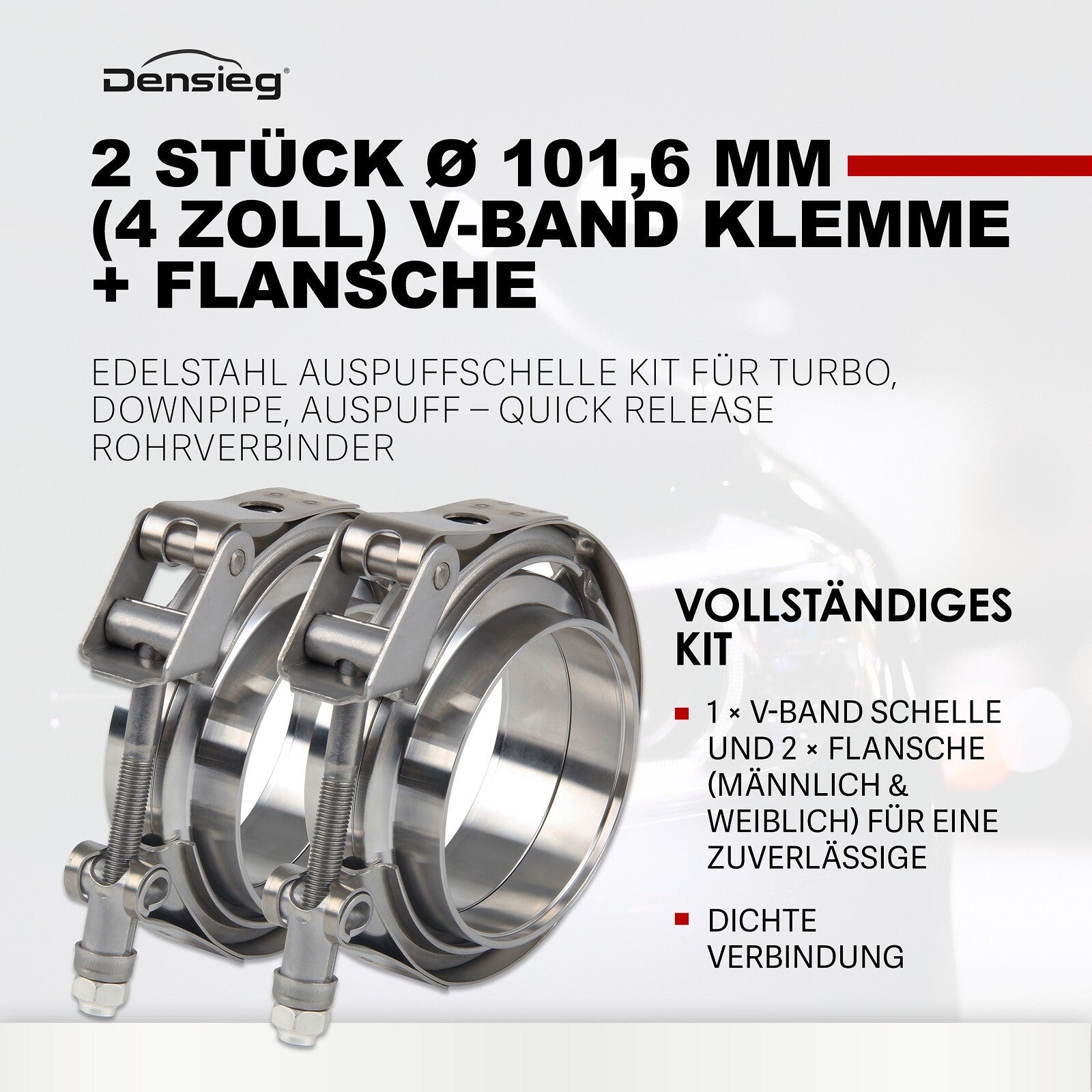 2x Edelstahl V Band Schelle Flange Rohrschelle 4" 101,6 mm Auspuff Turbo
