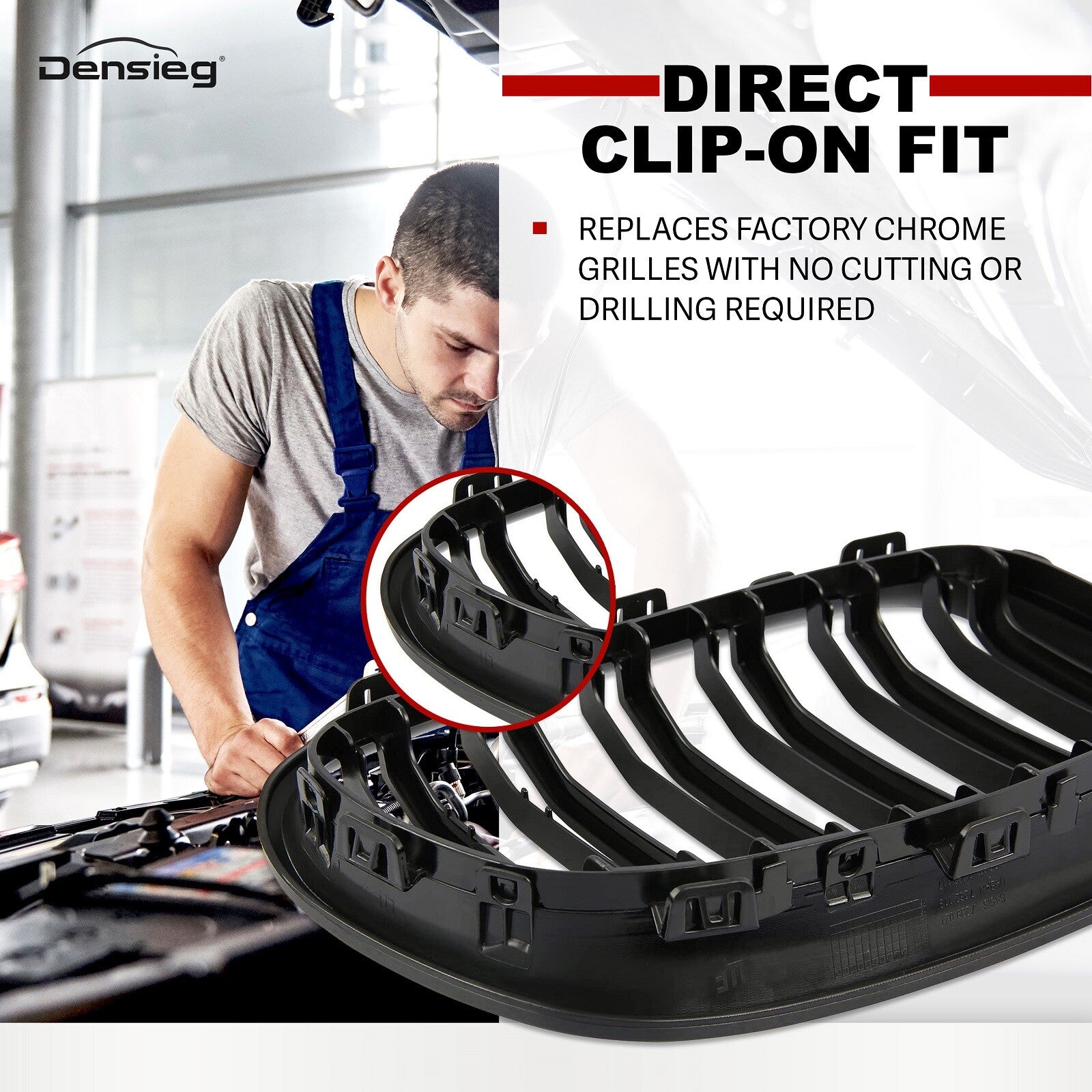 4) Direkte Clip-On-Montage - Ersetzt den werkseitigen Chromgrill ohne Schneiden oder Bohren.