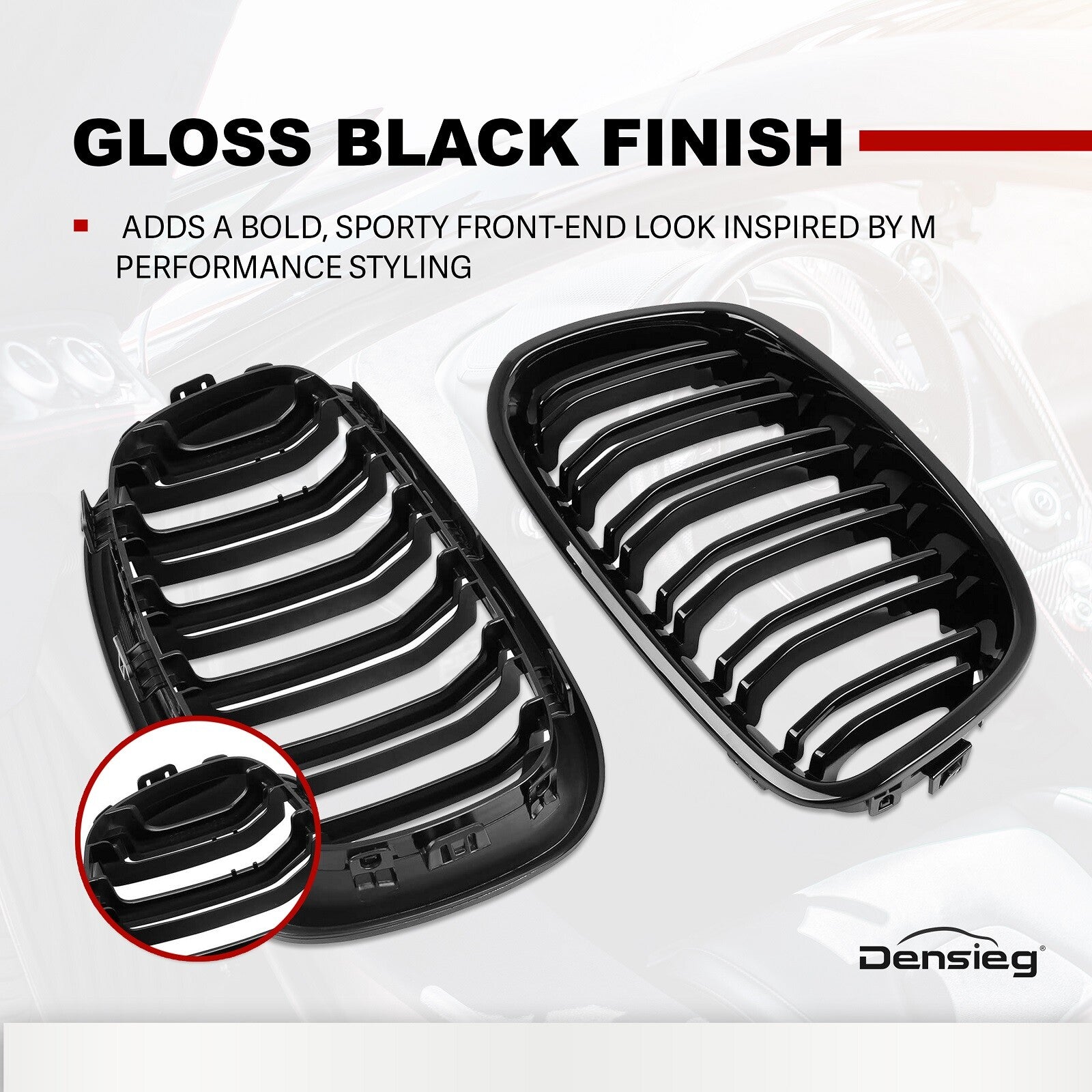 5) Komplettset - Enthält 1 Paar glänzend schwarze Nierengrills (Fahrer- und Beifahrerseite).