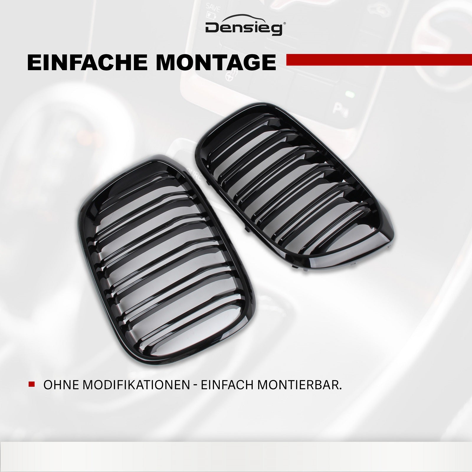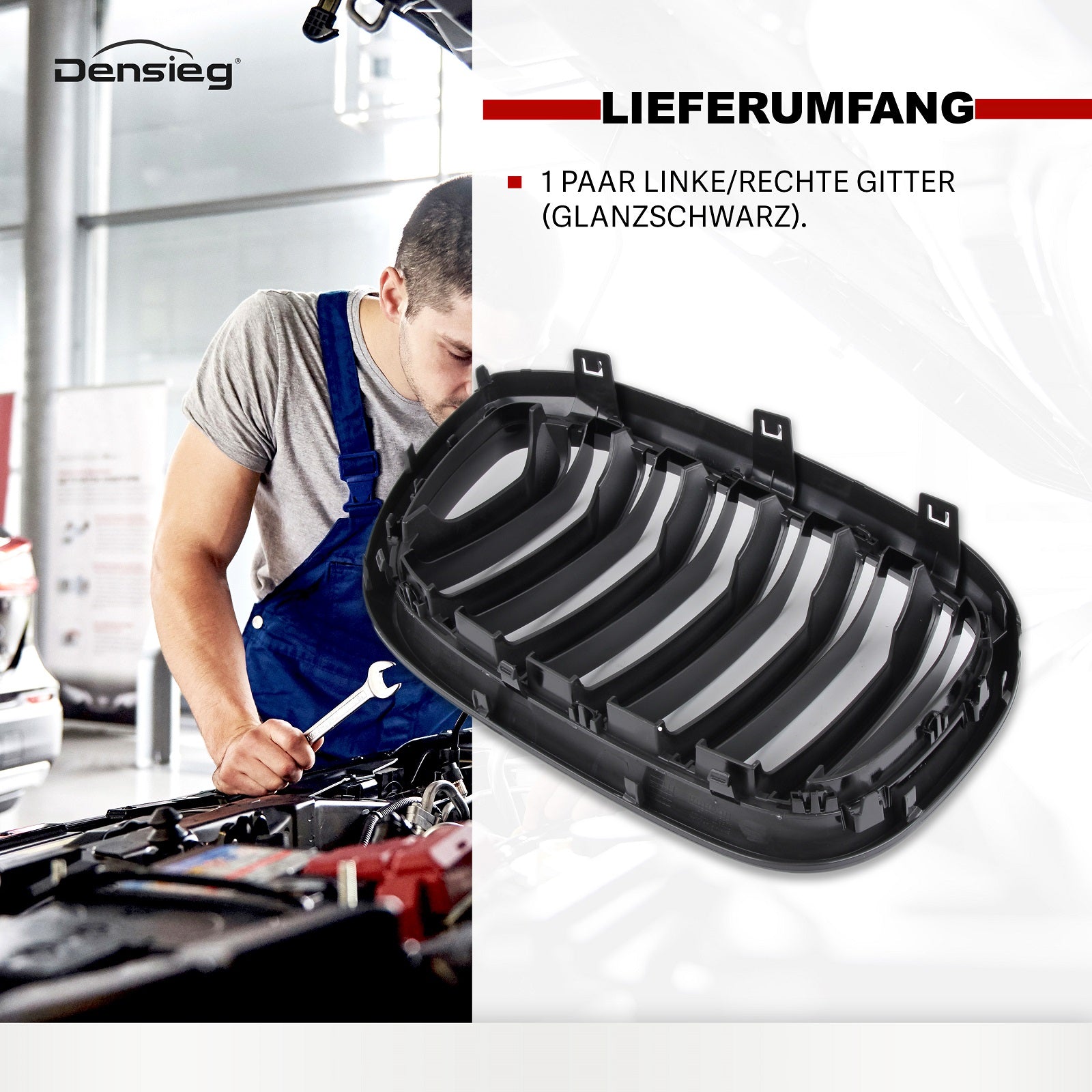 4) Lieferumfang: 1 Paar linke/rechte Gitter (glanzschwarz).