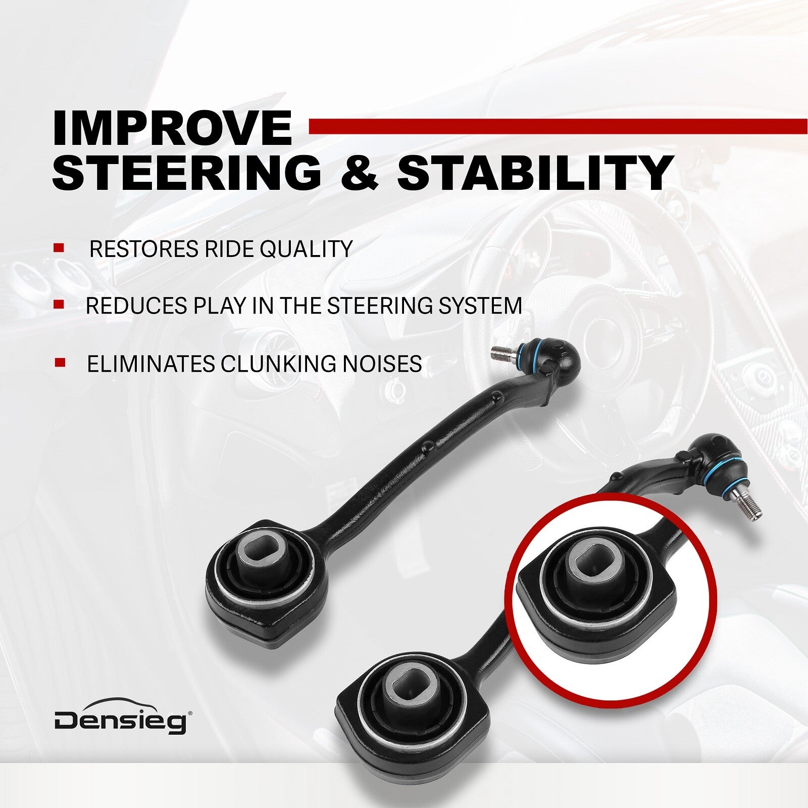 6) Lenkpräzision & Fahrsicherheit - Reduziert Lenkspiel und Klopfgeräusche, stellt die ursprüngliche Fahrwerksstabilität und Komfortperformance wieder her.