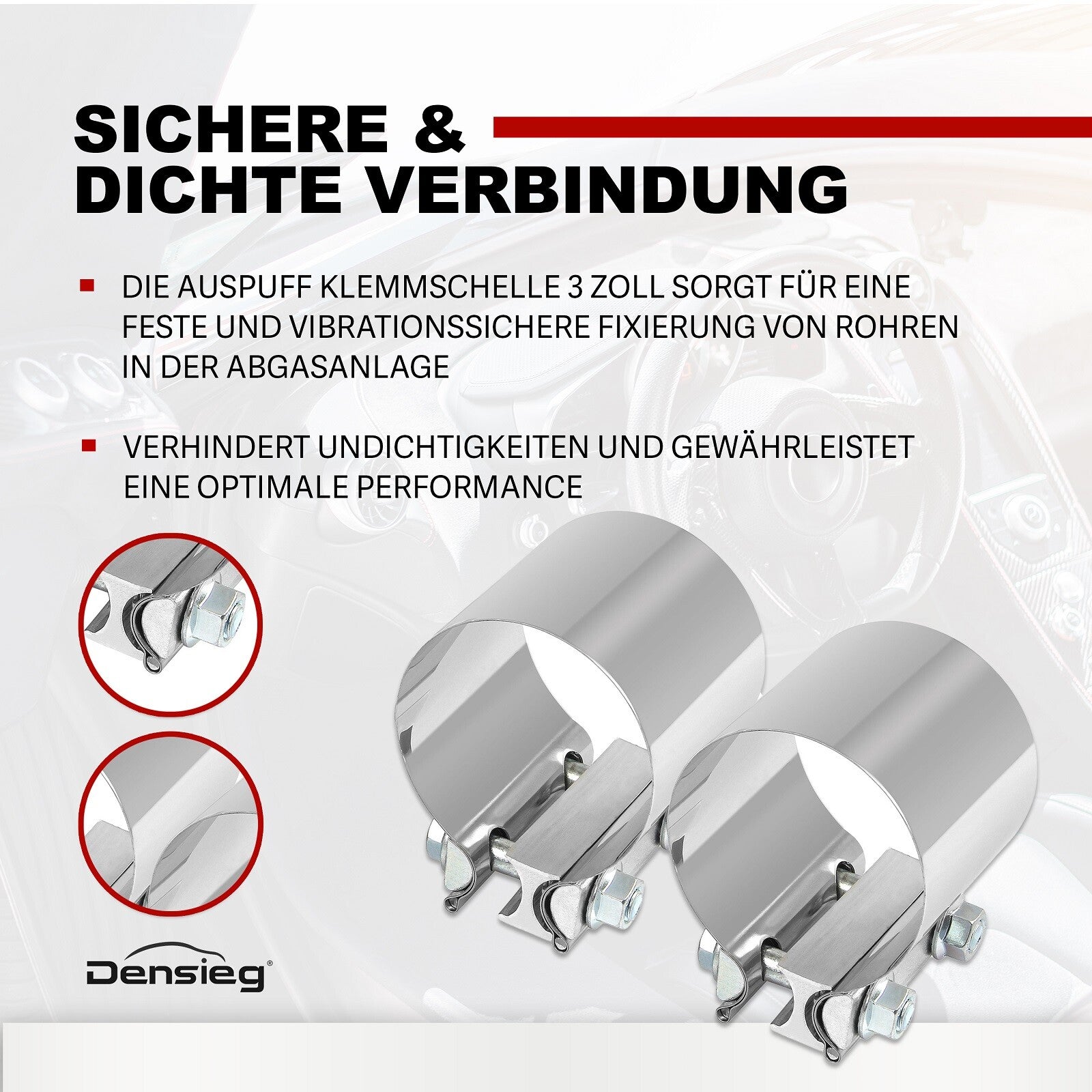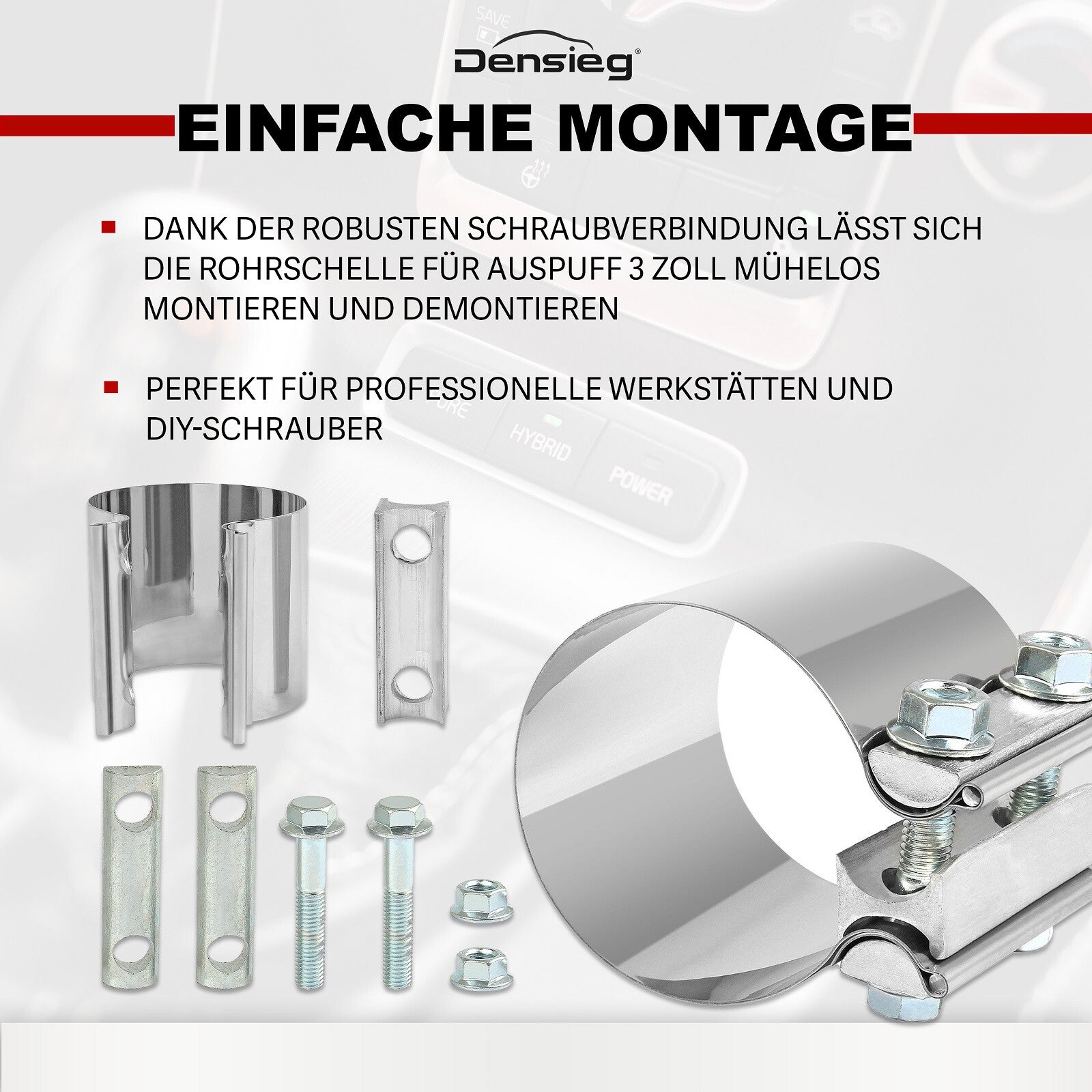 4) Aplicación versátil: nuestra abrazadera de conector de escape de 76,9 mm es adecuada para numerosos tipos de vehículos y es compatible con la mayoría de los sistemas de escape: ideal como abrazadera de tubo de vehículo de 76,9 mm.