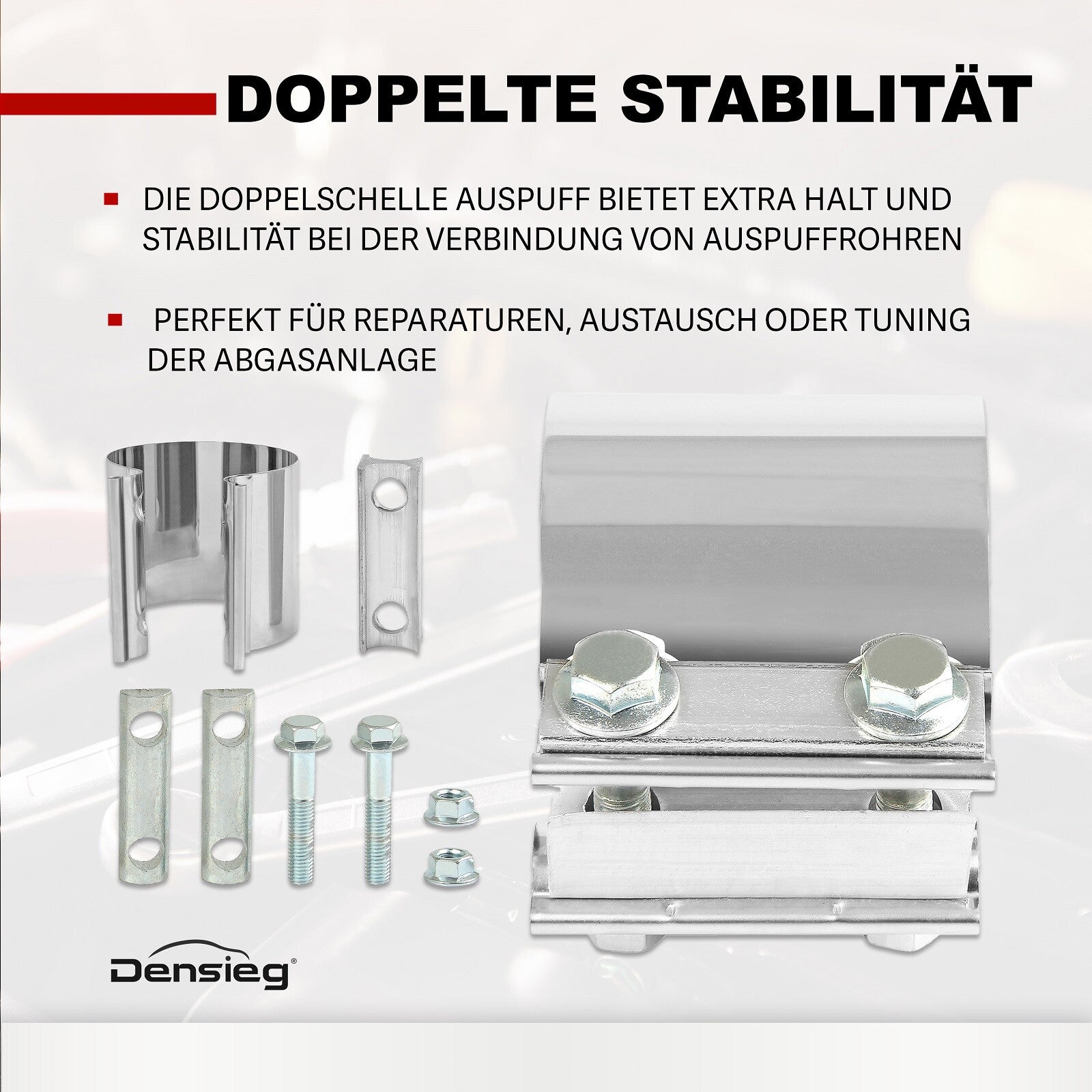 5) Doble estabilidad: La abrazadera doble para escape proporciona mayor soporte y estabilidad al conectar los tubos de escape. Ideal para reparaciones, reemplazos o ajustes del sistema de escape.