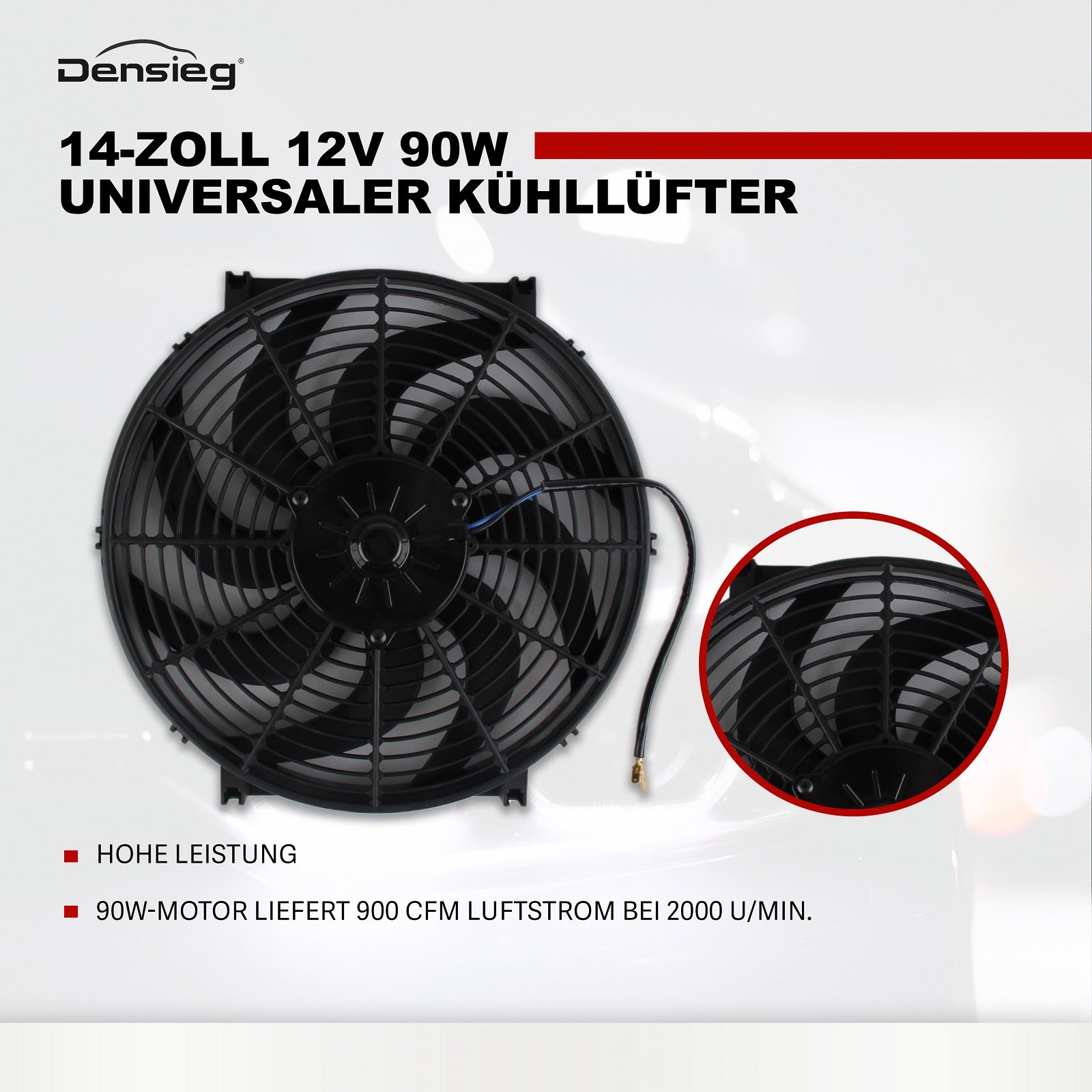 Leistung: 12V 90W (900 CFM, 2000 U/min)