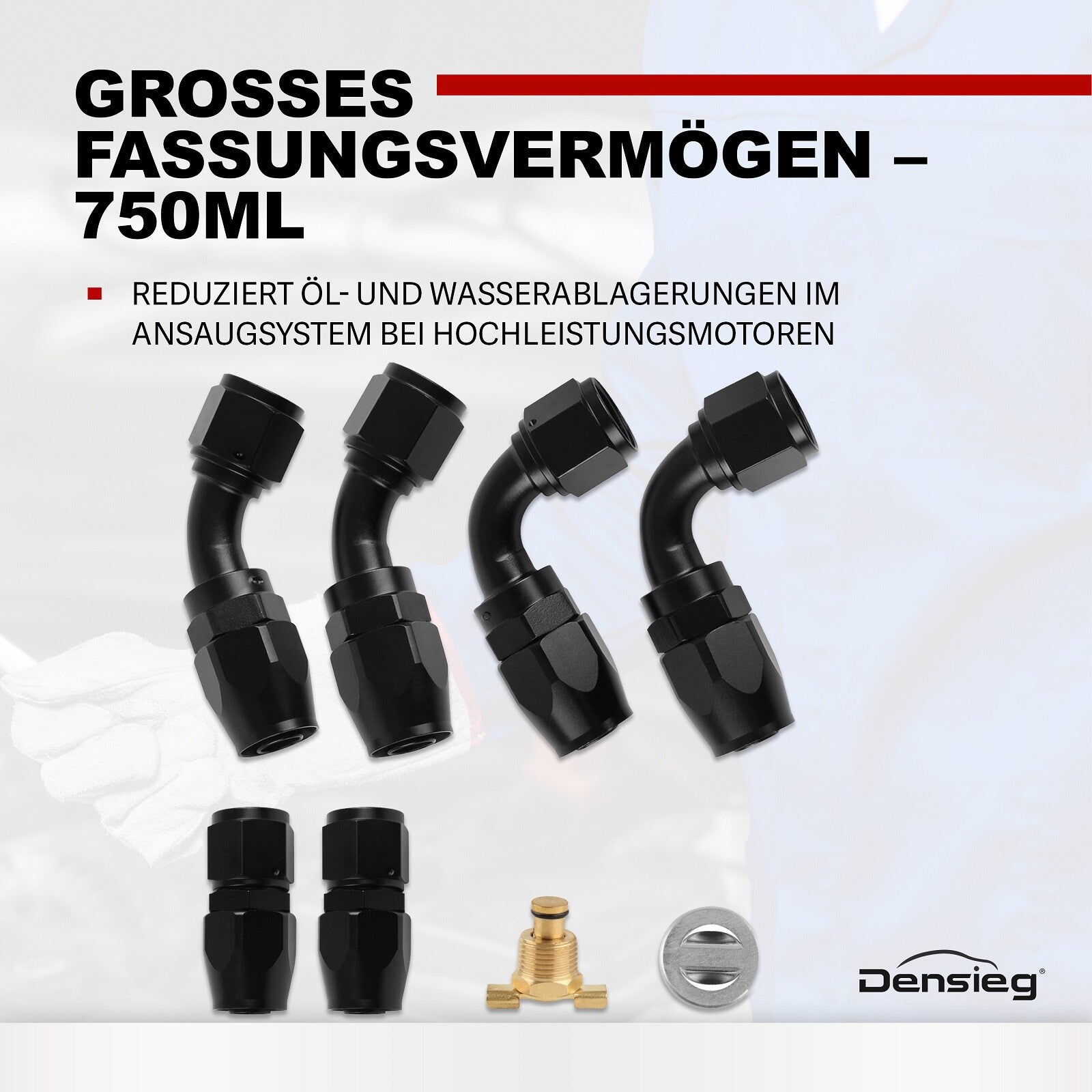 0,75L Aluminium Oil Catch Tank mit Luftfilter + AN10 Kraftstoffschlauch