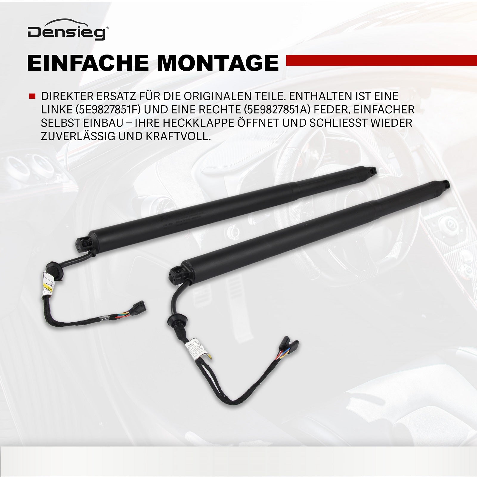 2) EINFACHE MONTAGE: Direkter Ersatz für die originalen Teile. Enthalten ist eine linke (5E9827851F) und eine rechte (5E9827851A) Feder. Einfacher Selbst Einbau – Ihre Heckklappe öffnet und schließt wieder zuverlässig und kraftvoll.