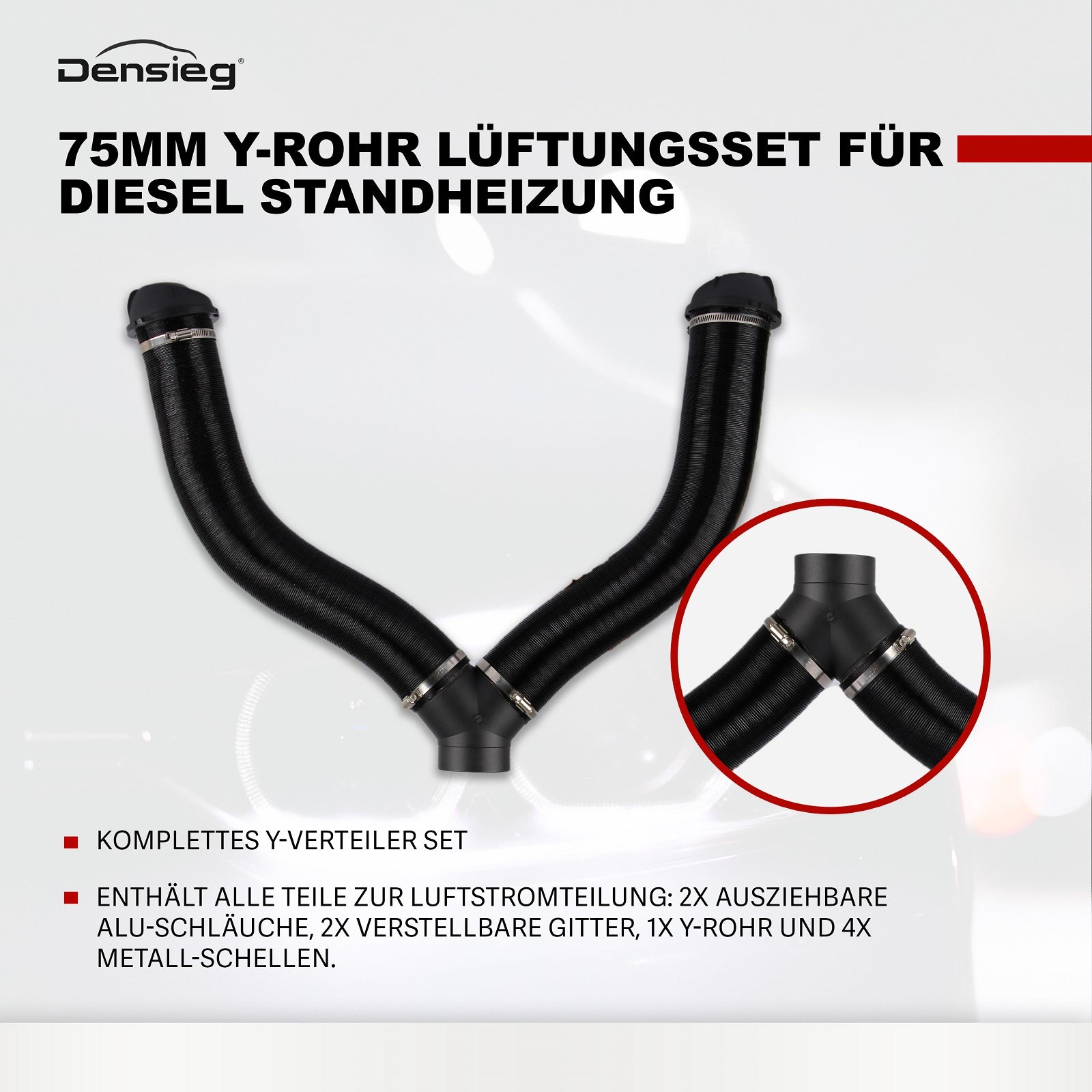 Diesel Standheizung 75mm Y-Rohr-Set Warmluftauslass Entlüftungsschlauch